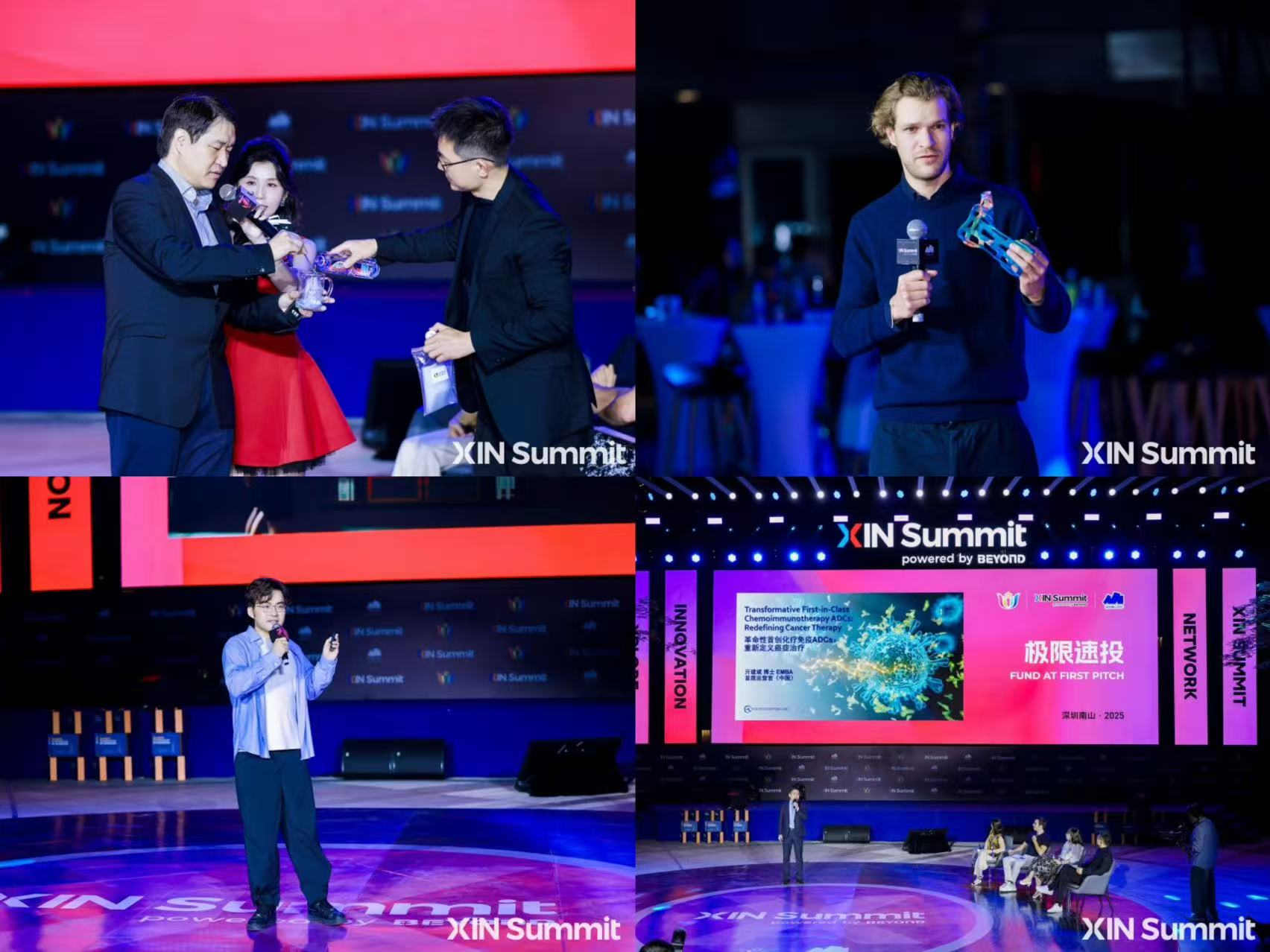 大会特别设置“Fund at First Pitch 极限速投”环节,将当晚的节奏推向一个新的高潮,创业者用最短时间讲清企业及技术亮点,评委现场给出最犀利、最真实的反馈。评委阵容包括微反应科学研究院院长姜振宇;LinkedIn大中华区总经理王茜;歪果仁研究协会联合创始人高佑思;联想创投集团董事总经理,联想加速器总经理梁颖从多元视角为创业项目把脉,作为 XIN 峰会支持伙伴及 FAFP 战略合作伙伴,深圳市天使母基金、深圳市天使投资协会也为该环节提供了强有力支持。